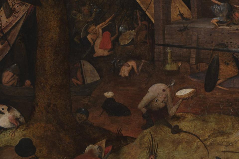 The figures seem somewhat clumsily and crudely painted, but this is a familiar Bruegel trait. The great Bruegel specialist Manfred Sellink recently pointed out that the figures in this early Bruegel work are closely comparable to those to be seen in none other than Mad Meg. These two works now hang side by side in the museum.