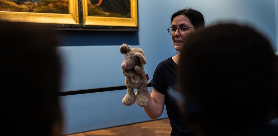 Samen met Fritzie en de gids snuffelen de kinderen door de oude kamers van het Maagdenhuis. Ze luisteren naar verhalen, kijken naar kunstwerken en voeren opdrachten uit. Een kralenketting maken geïnspireerd door een kunstwerk? Check! Een mooie waaier vouwen? Komt voor elkaar! Taferelen uit een Bruegelschilderij uitbeelden en raden? Leuk!