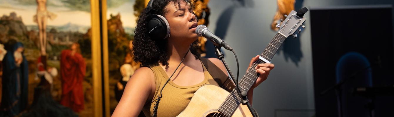 Een palmhouten beeld van Sint-Cecilia, patroonheilige van de muzikanten, is de publiekslieveling van Emma Hessels. De jonge singer-songwriter schreef er ook een ode aan. In haar intieme songs verkent Emma liefde, eenzaamheid en verbinding. Donderdag 29 januari cureert ze een muzikale avond over deze universele thema's. Over enkele weken maken we haar programma bekend.