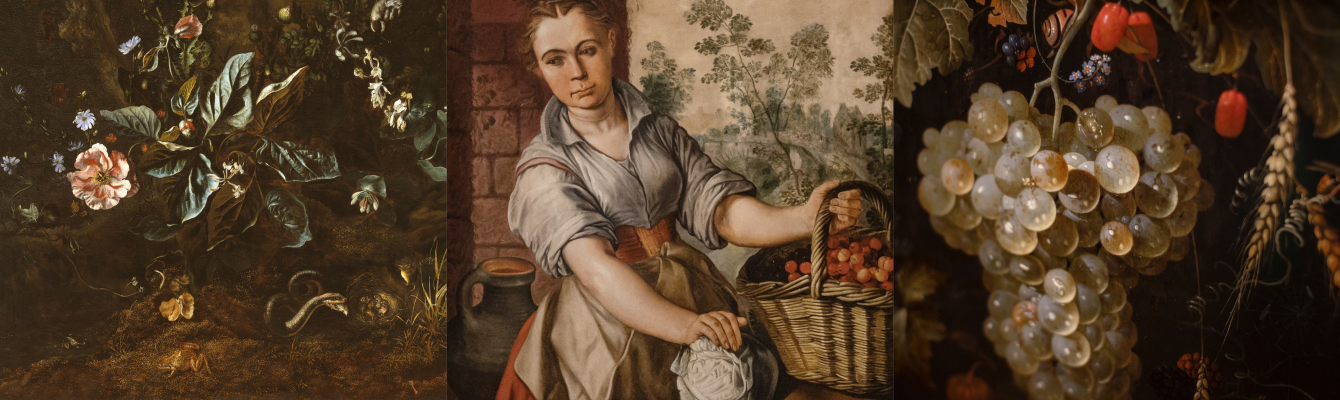 Museum Mayer van den Bergh leent voor deze expo drie schilderijen uit. Verleiding staat centraal in Groenteverkoopster van Joachim Beuckelaer. In Isac Vromans’ Bosstilleven met slang en kikker loert het gevaar en met Druiventros in een nis leverde Abraham Mignon een staaltje van artistiek illusionisme. Alle drie demonstreren ze op eigen wijze de complexe relatie tussen mens en natuur.