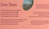 "Ik wou dat ik kon teruggaan, naar de tijd van Bruegel. Ik wou dat ik kon voelen, hoe traag het leven liep." Benieuwd hoe het gedicht verder gaat? Kom woensdag 19 november tussen 15 en 17 uur naar de inhuldiging van het gedicht Den Dam onder het viaduct aan het Damplein.