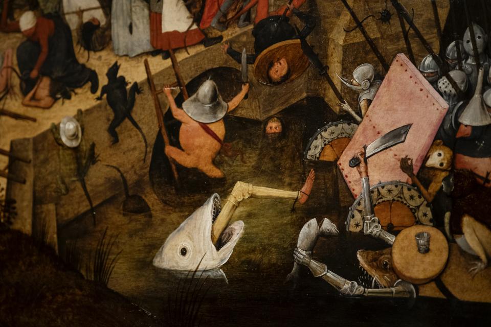 Der Kunsthistoriker Max Friedländer war sicher erstaunt, als er hoch oben auf einer Leiter ein Tafelbild auf einer Auktion in Köln untersuchte: ein Bild von Bruegel, darüber waren er und der Auktionskatalog einer Meinung. Aber welches? Eins von Pieter Bruegel dem Älteren oder von einem seiner malenden Söhne? Da das rätselhafte Gemälde zu hoch an der Wand hing und kaum zu sehen war, erwies sich eine genaue Identifizierung als schwierig. Auch das Bild selbst - aufsehenerregende Szenen, Ungeheuer, Gewalt und ein Mannweib inmitten einer vulkanischen Landschaft - bot kaum Hinweise.