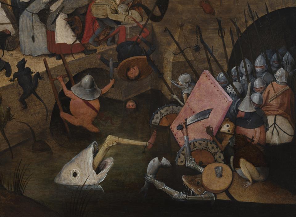 La restauration a donné à la toile un aspect bien plus frais et a révélé des détails cachés à la vue depuis des siècles, comme l’ours en peluche, les casques finement ouvragés et le magnifique paysage à l’arrière-plan. La palette de couleurs est plus claire et plus variée. Les traits de pinceau de Breughel et son exceptionnel talent sont à nouveau visibles. L’espace reprend tous ses droits et la scène tout entière acquiert davantage de profondeur.